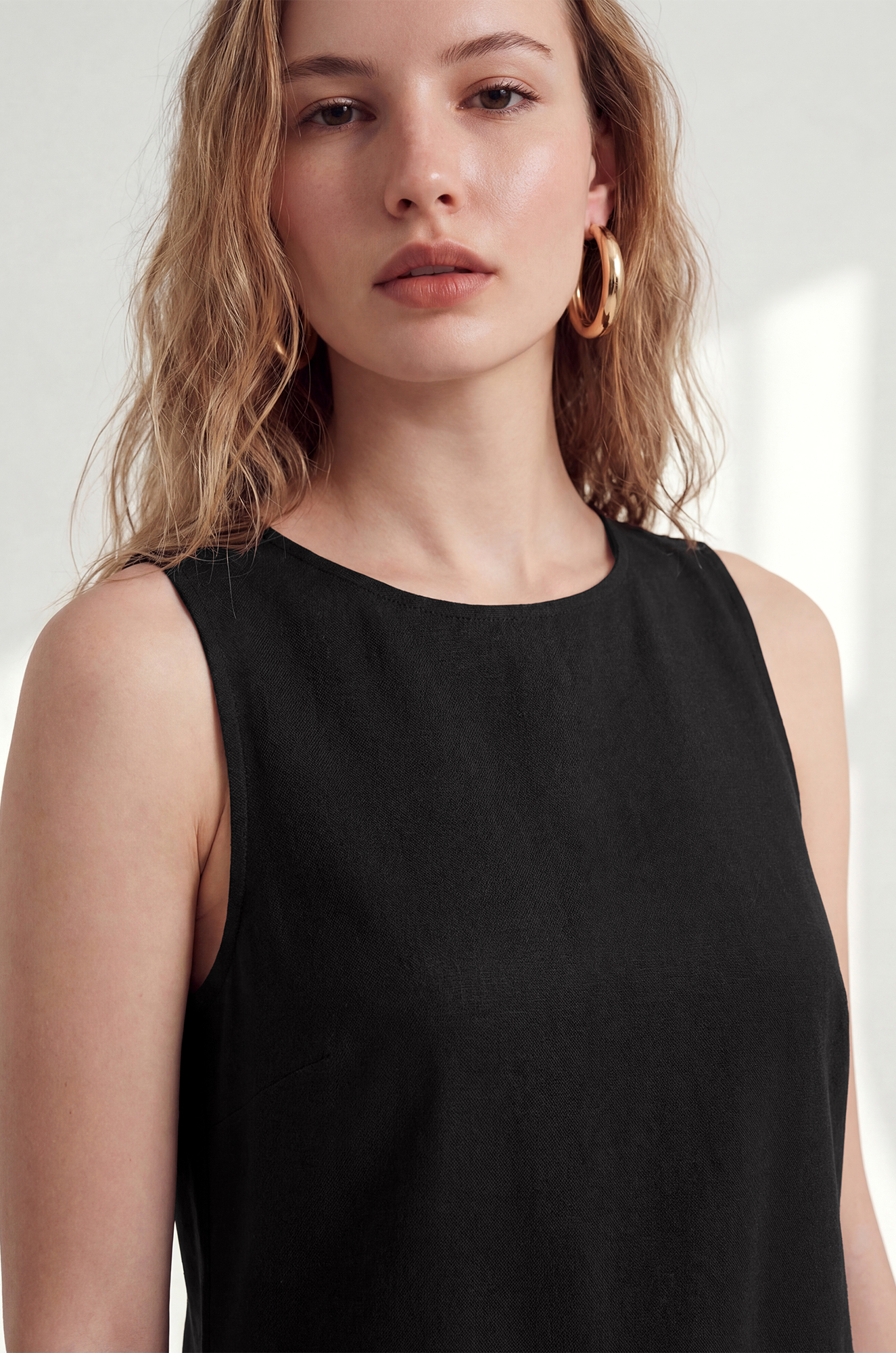 Элегантное льняное платье — ваш идеальный спутник на лето. Благодаря приталенному крою и длине миди женское платье мягко подчеркивает силуэт, создавая изящный женственный образ. Круглый вырез и отсутствие рукавов делают модель визуально легкой, а застежка на спинке добавляет удобства и практичности.