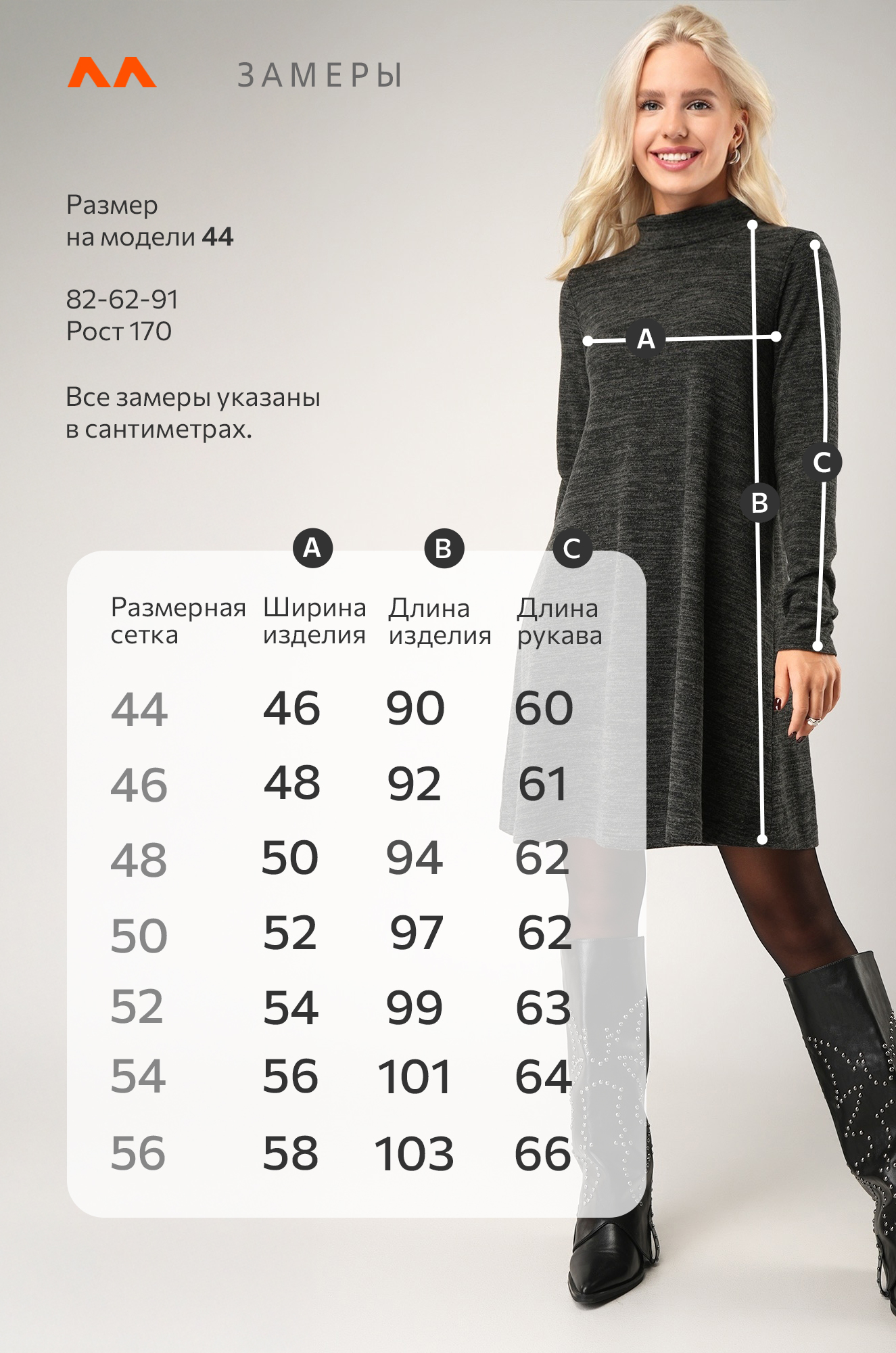Если вы предпочитаете более свободную посадку, рекомендуем взять платье на размер больше.