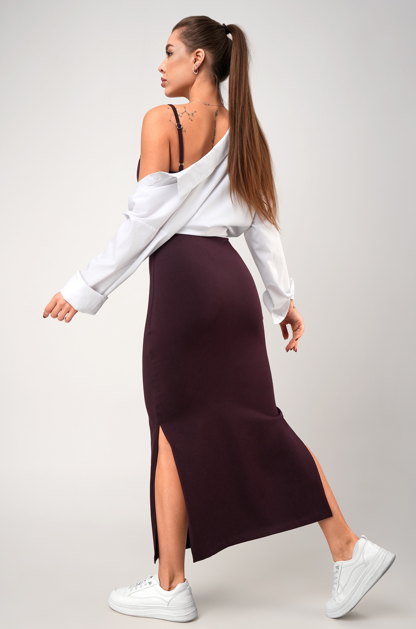 — универсальная длина миди и лаконичный однотонный дизайн создают основу для множества образов.