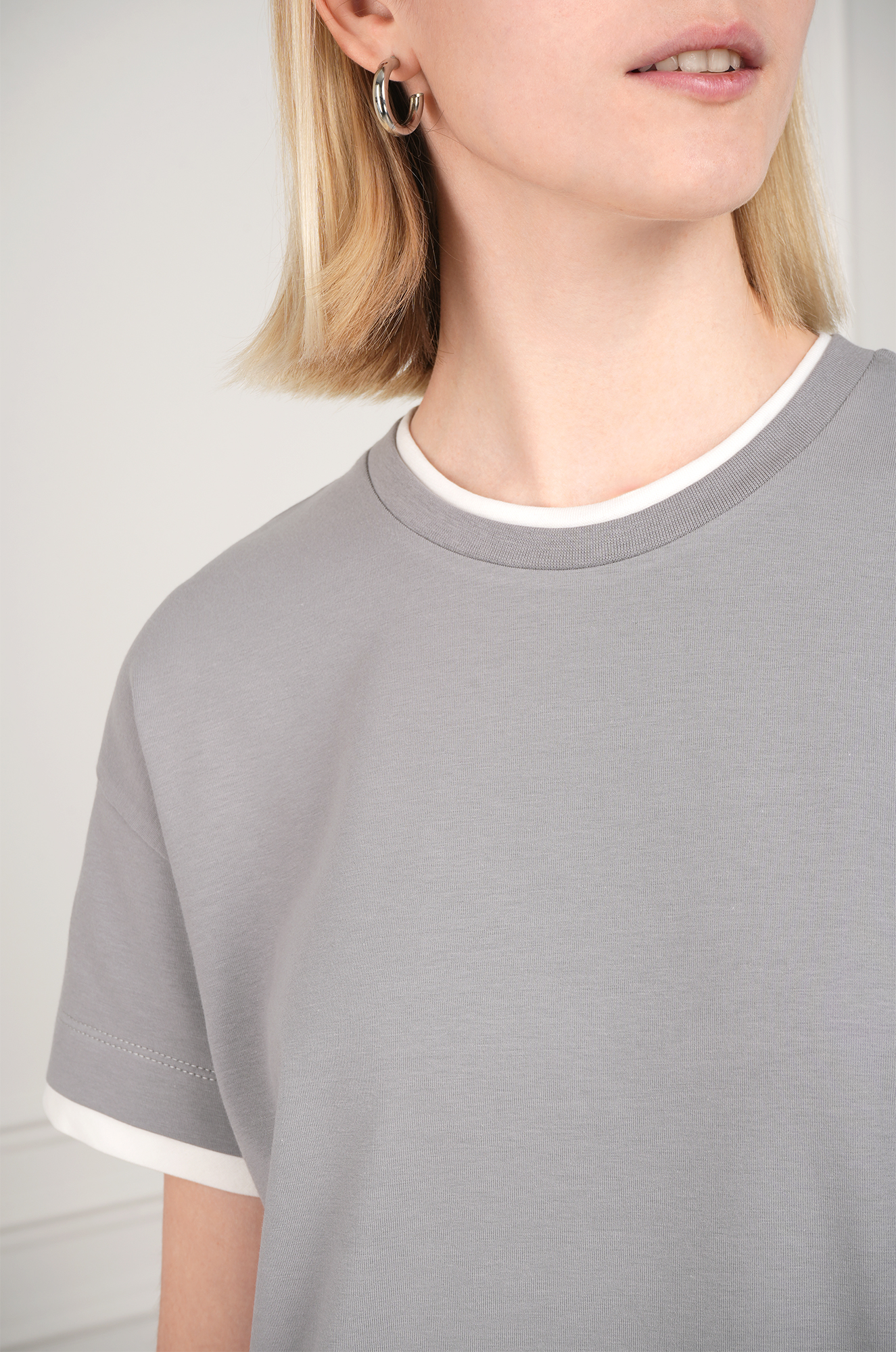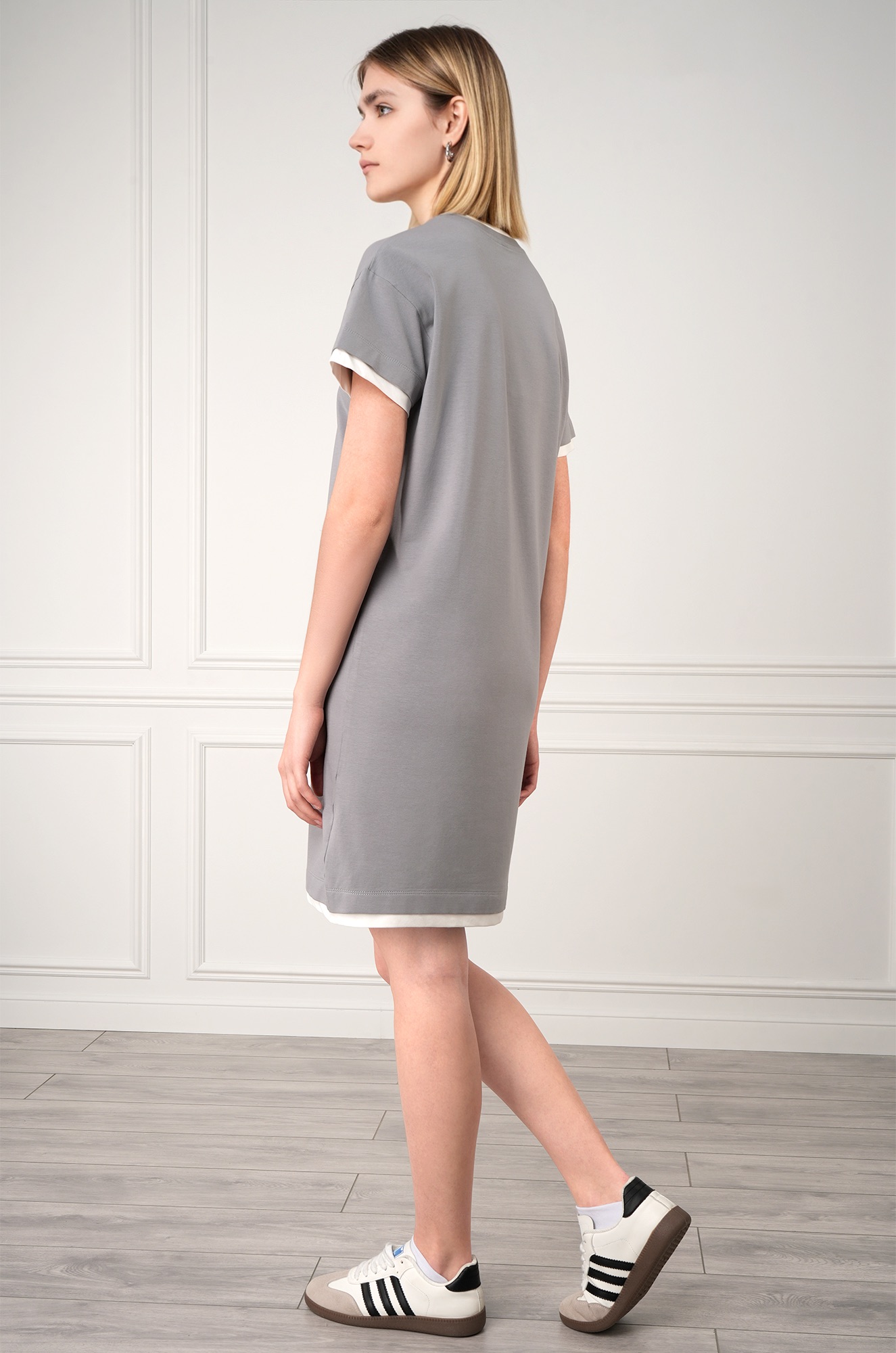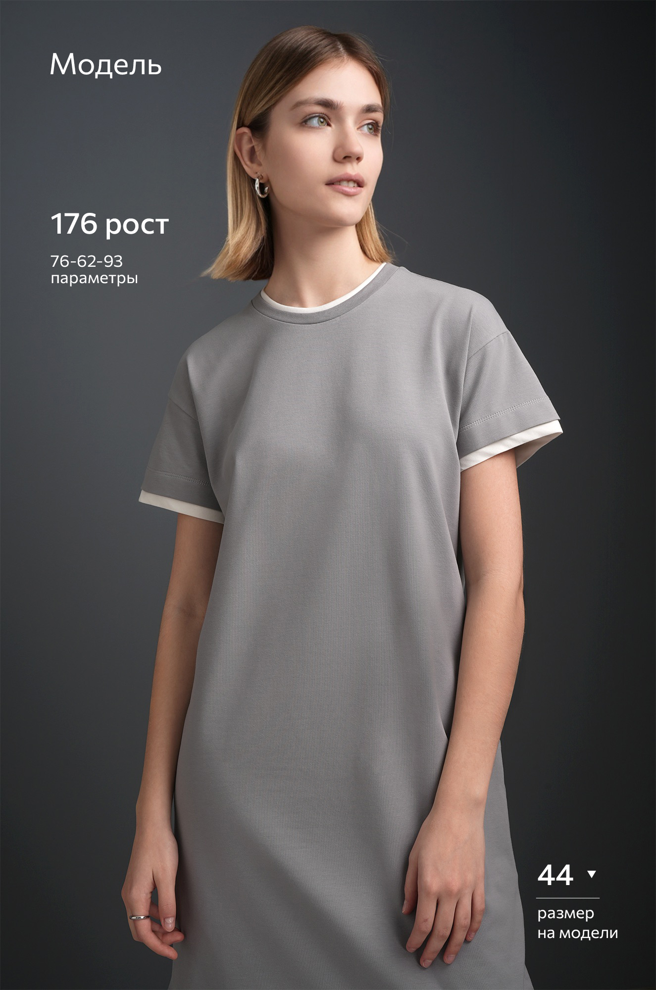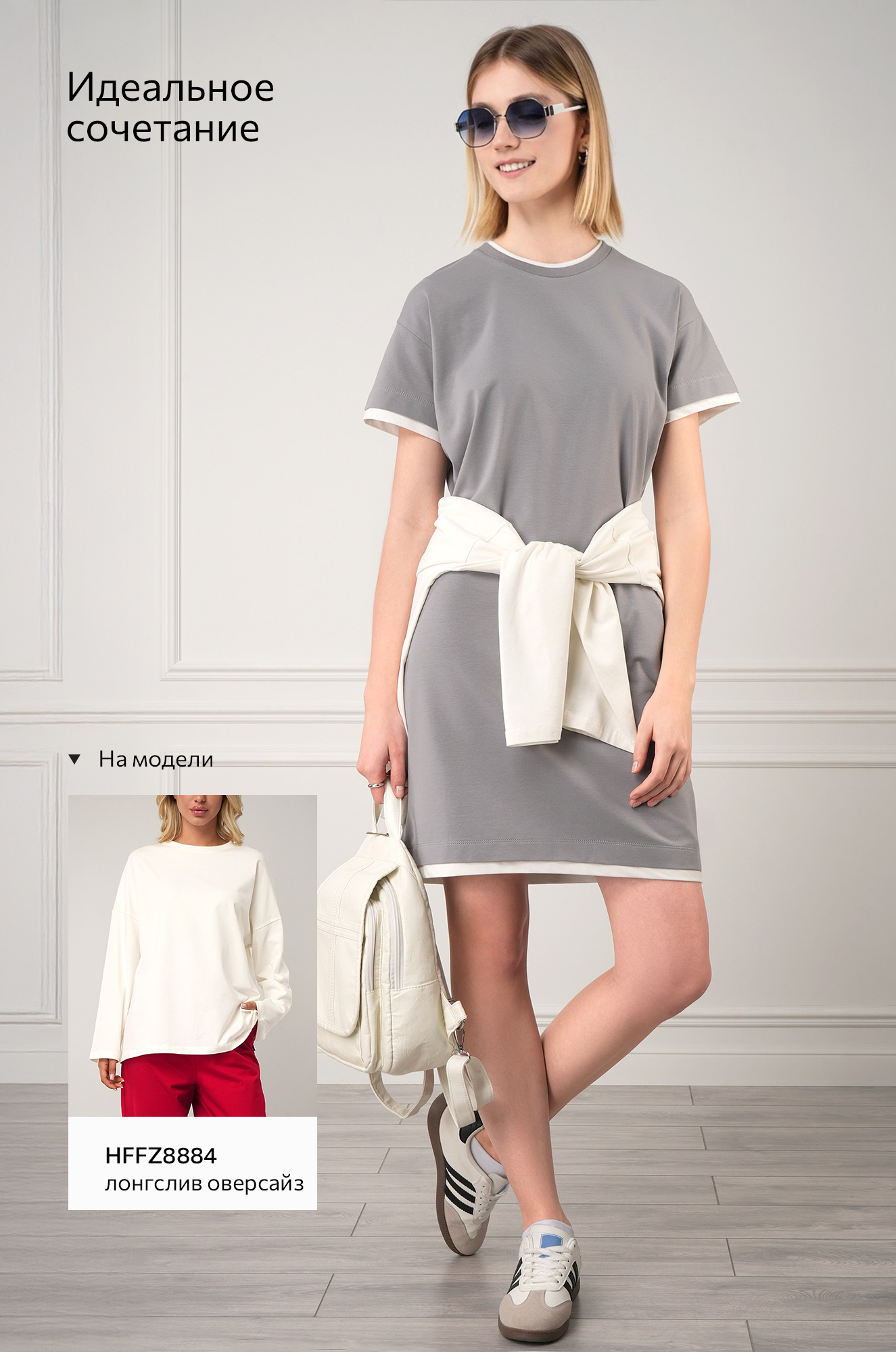 Женское платье-футболка — прекрасное решение для жаркого лета. Свободное платье с коротким рукавом выполнено из хлопка с добавлением эластана (95% хлопок, 5% эластан, плотность 180 г/м²), что делает его приятным к телу, эластичным и комфортным для повседневного ношения. Спортивное трикотажное платье прямого кроя создаёт красивый свободный силуэт.