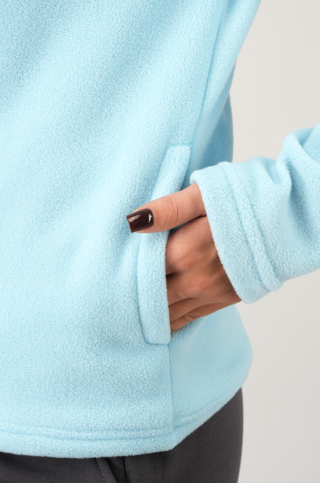 Голубая флиска для женщин станет комфортным вариантом для прохладных осенних и зимних дней.