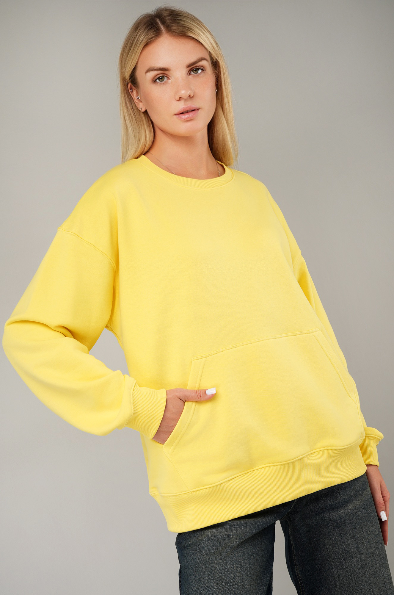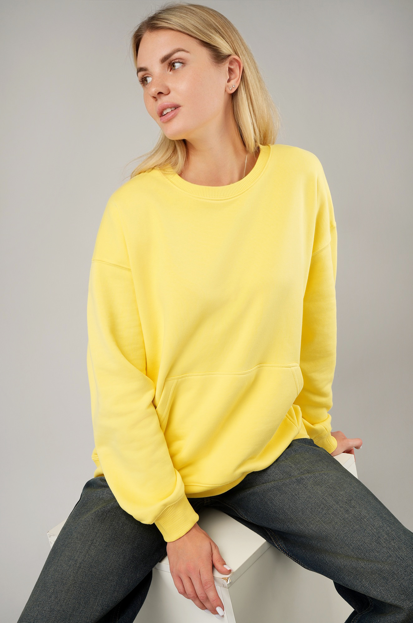 Свободный крой оверсайз со спущенным плечом создаёт расслабленный силуэт. Трикотажный демисезонный свитшот для женщин идеально подходит для домашнего отдыха, прогулок или встреч на свежем воздухе в осенний или весенний день.