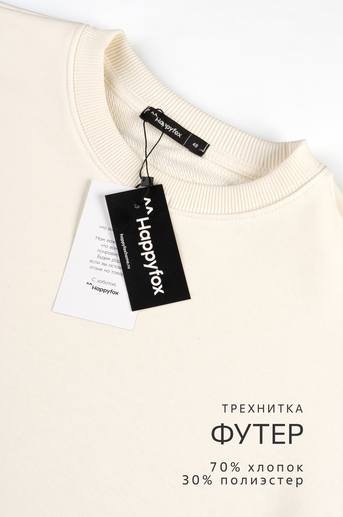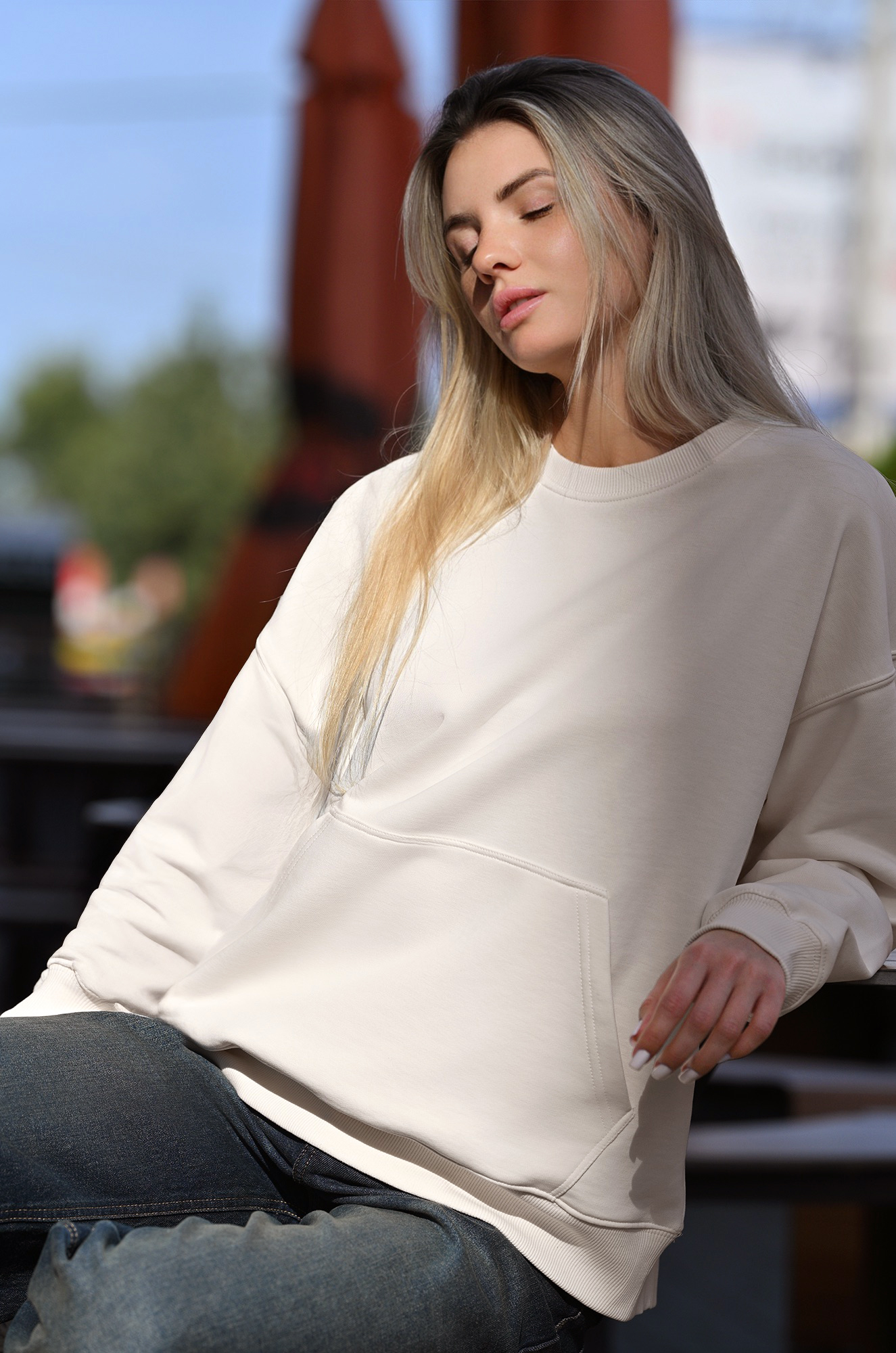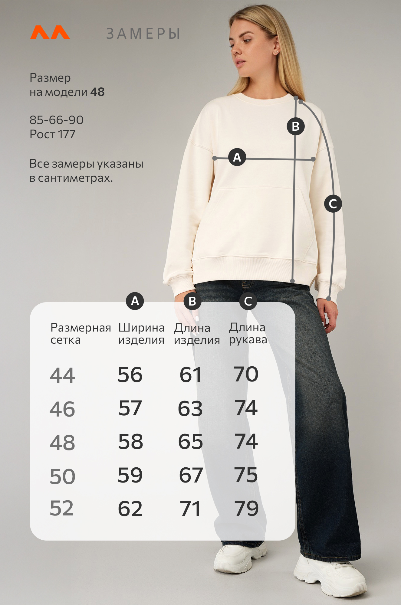 Свободный крой оверсайз со спущенным плечом создаёт расслабленный силуэт. Трикотажный демисезонный свитшот для женщин идеально подходит для домашнего отдыха, прогулок или встреч на свежем воздухе в осенний или весенний день.