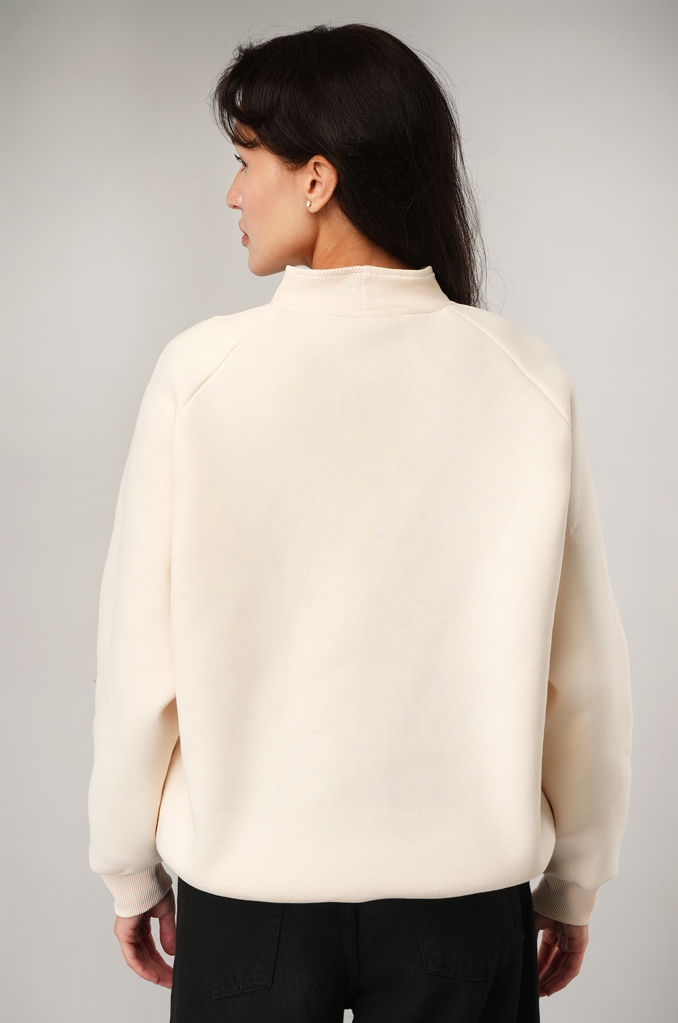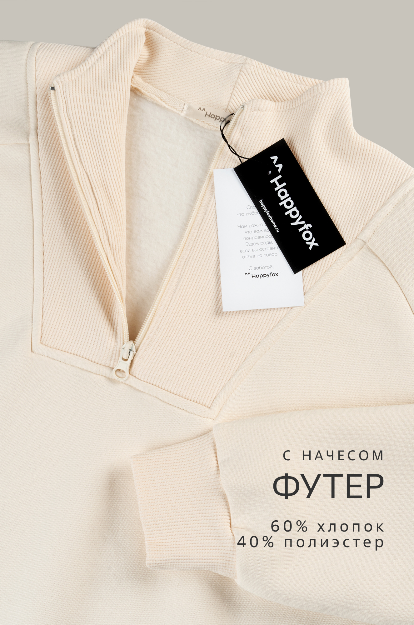 — молочный свитшот с полузамком на молнии защищает от ветра и добавляет стильный акцент;
