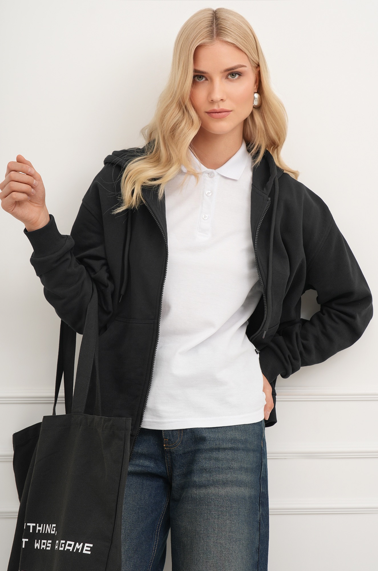 — черная толстовка оверсайз дарит свободу движений и подчёркивает расслабленный стиль;