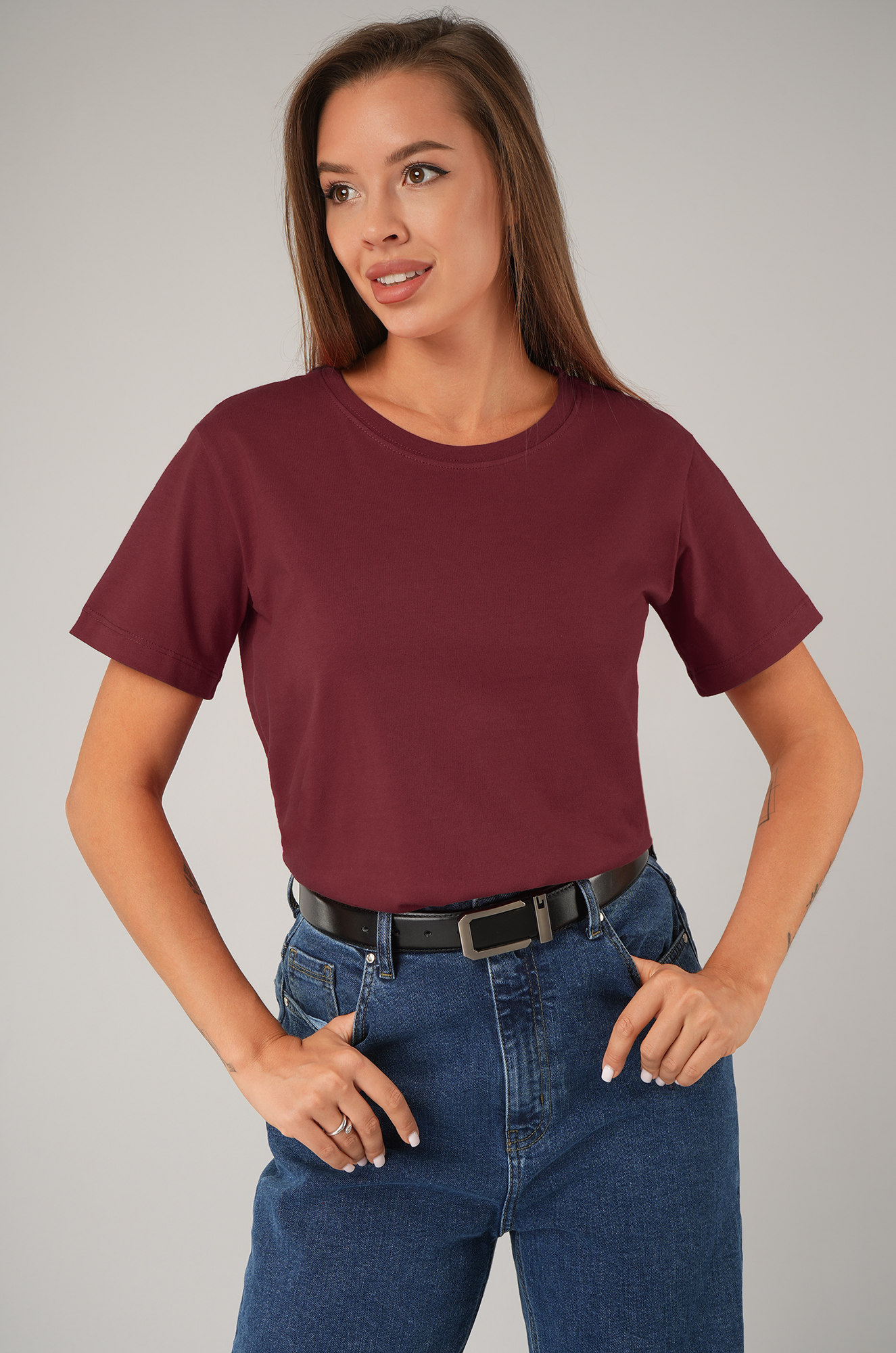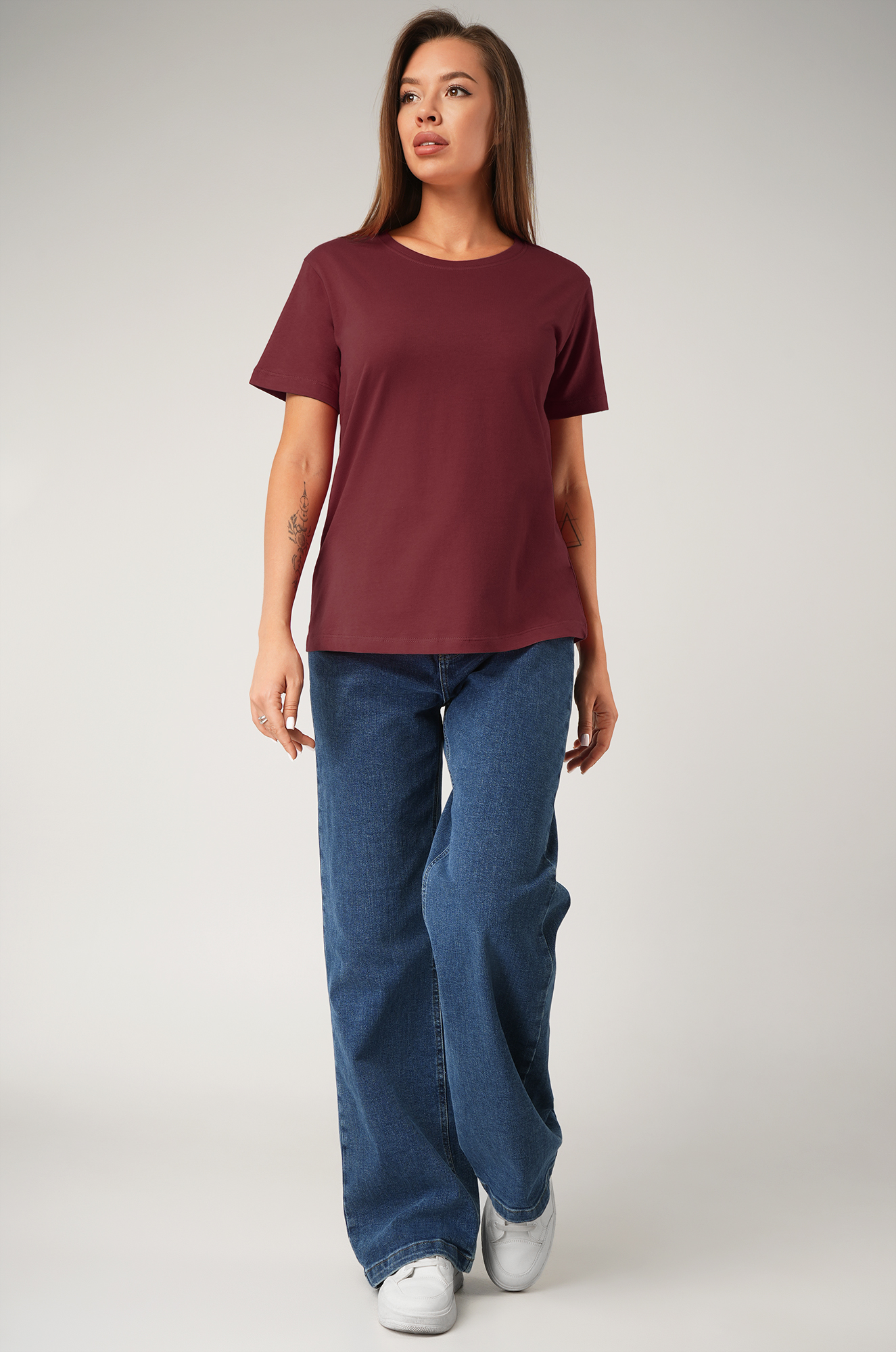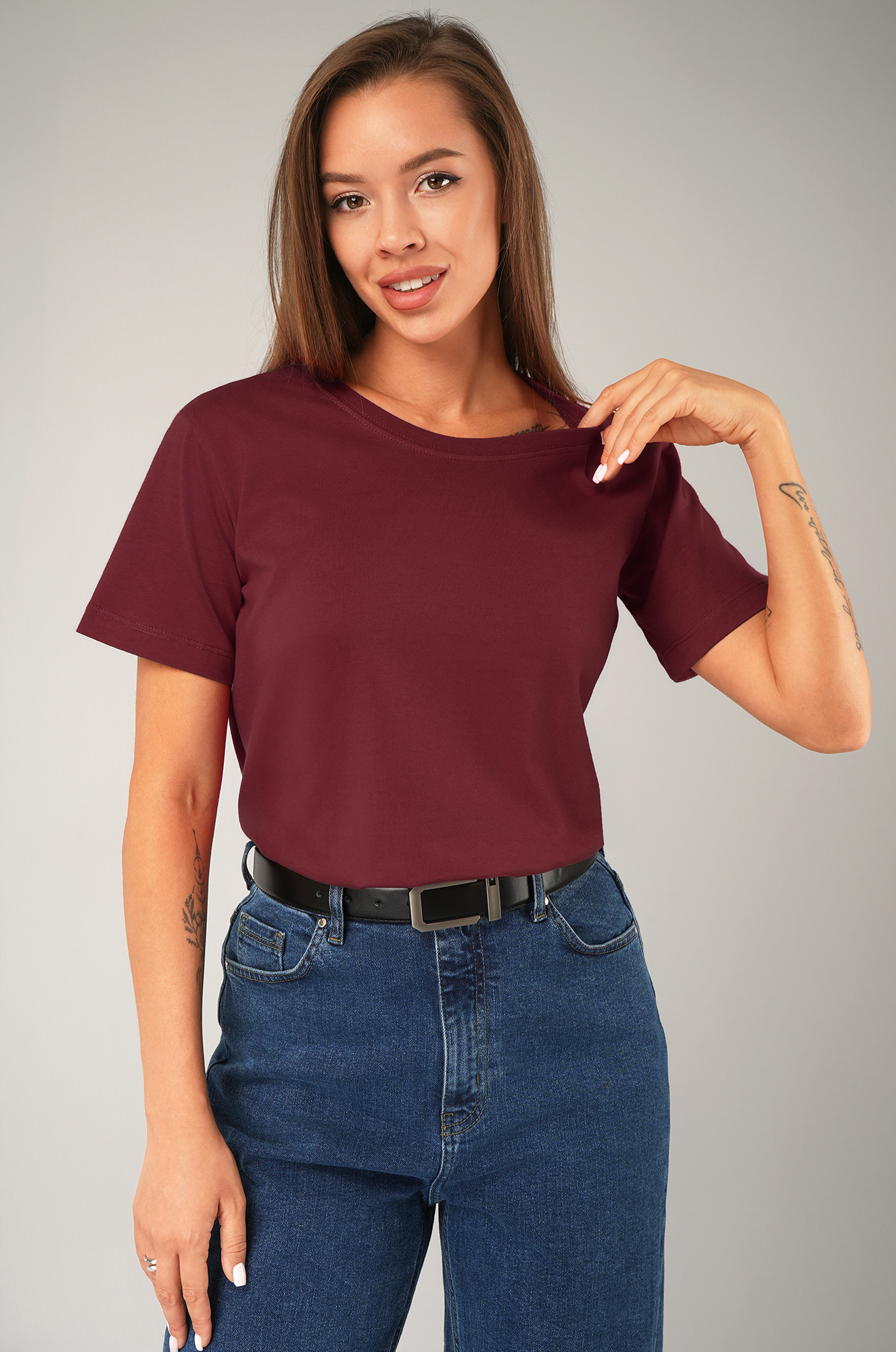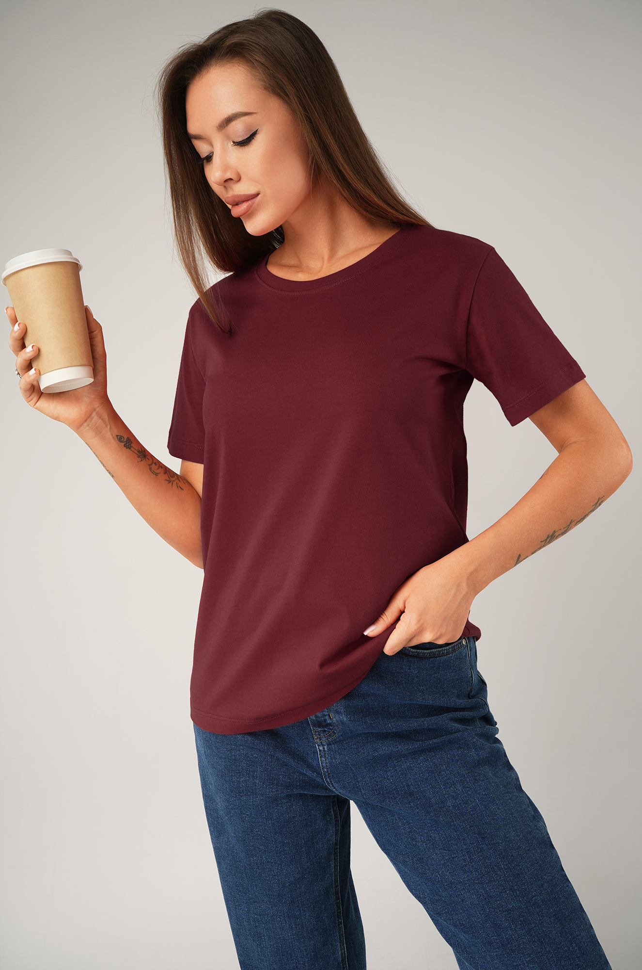 — бордовая футболка универсальна и легко сочетается с любыми элементами гардероба;