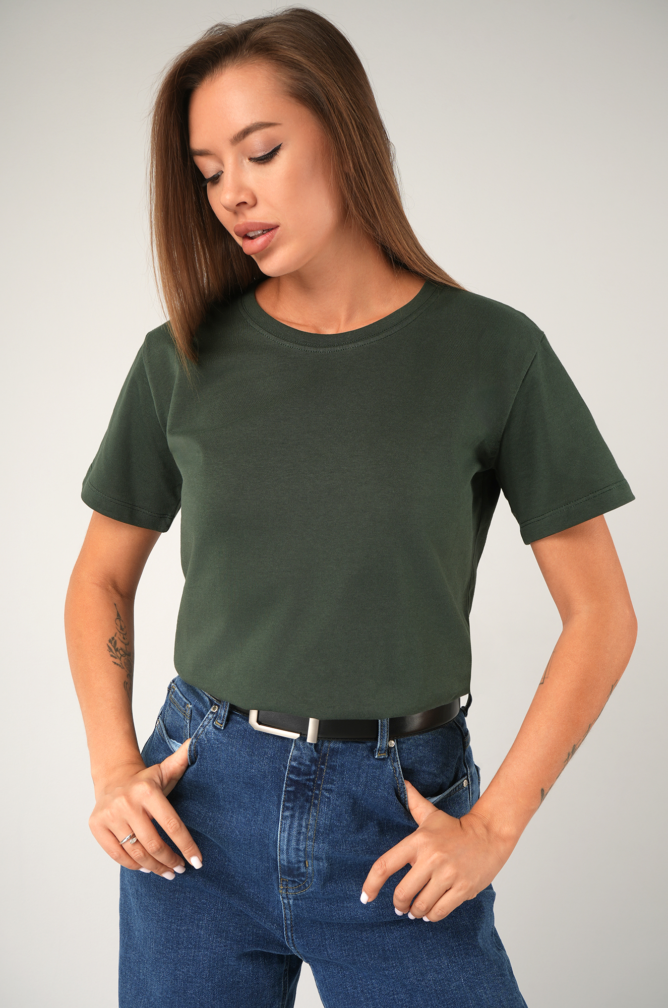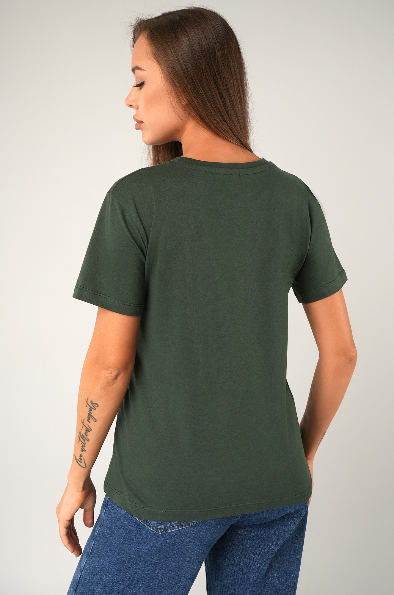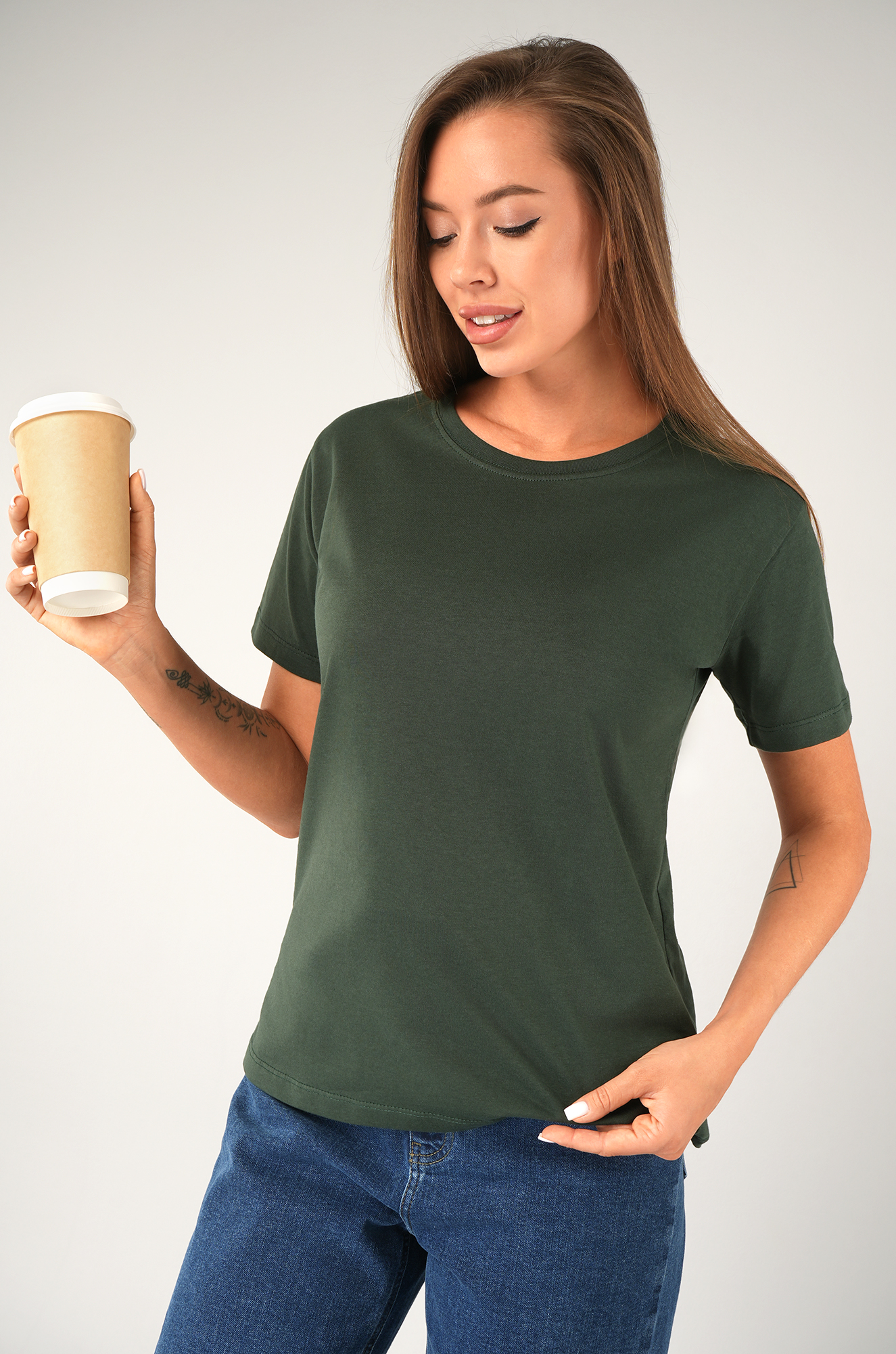 — футболка оттенка хаки универсальна и легко сочетается с любыми элементами гардероба;
