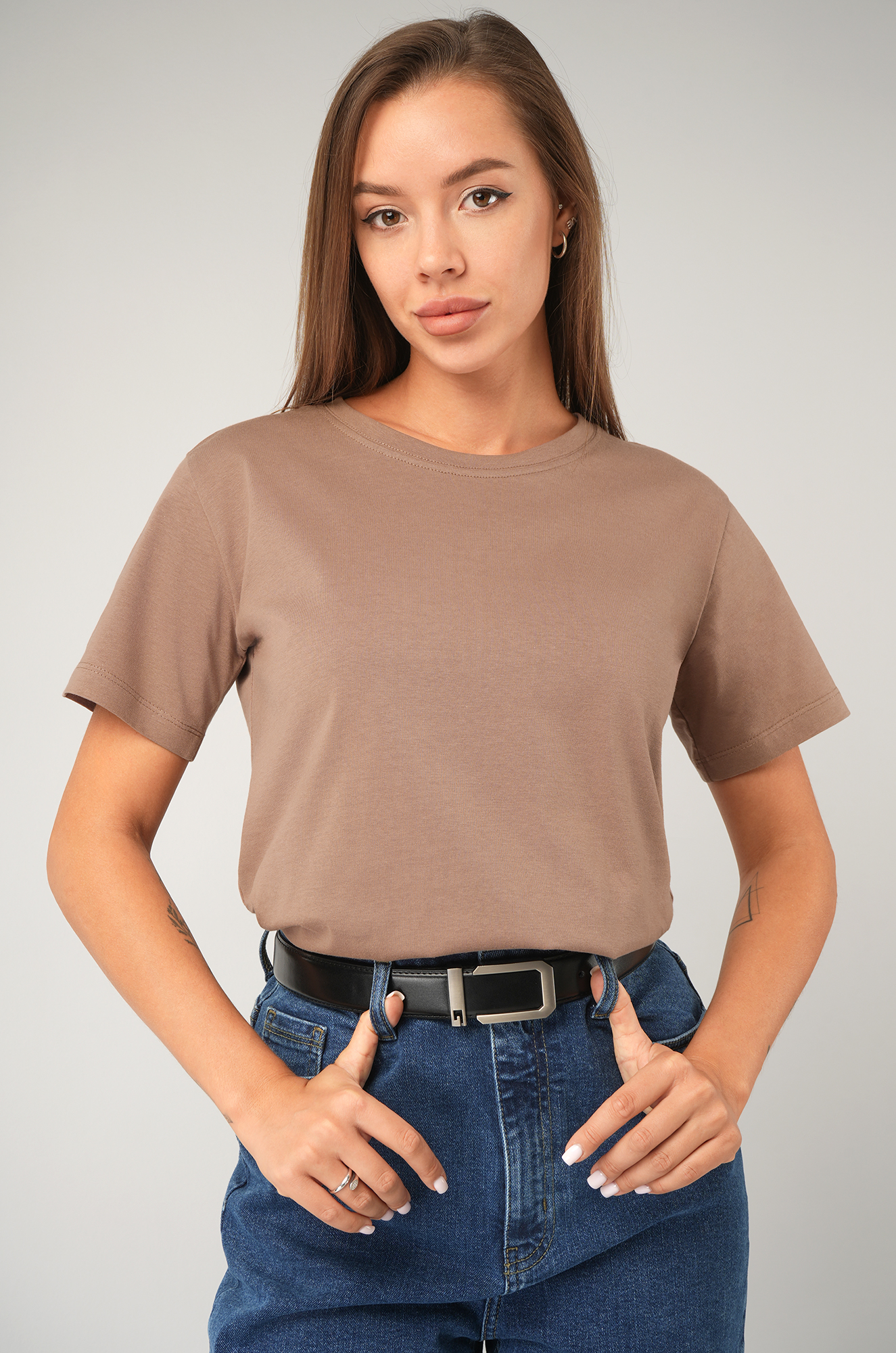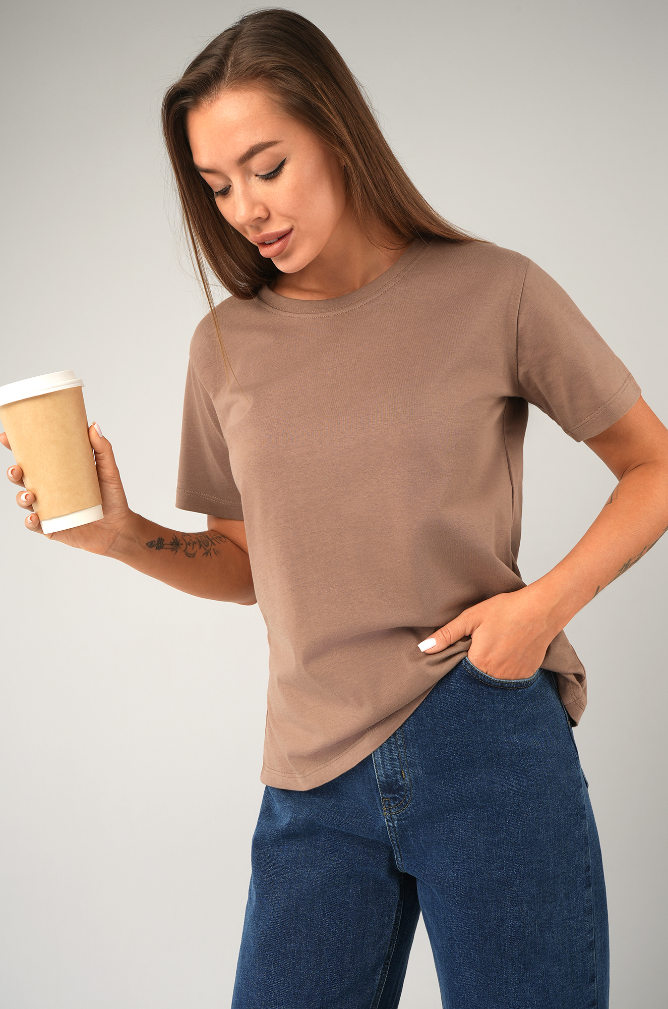 — футболка оттенка мокко универсальна и легко сочетается с любыми элементами гардероба;