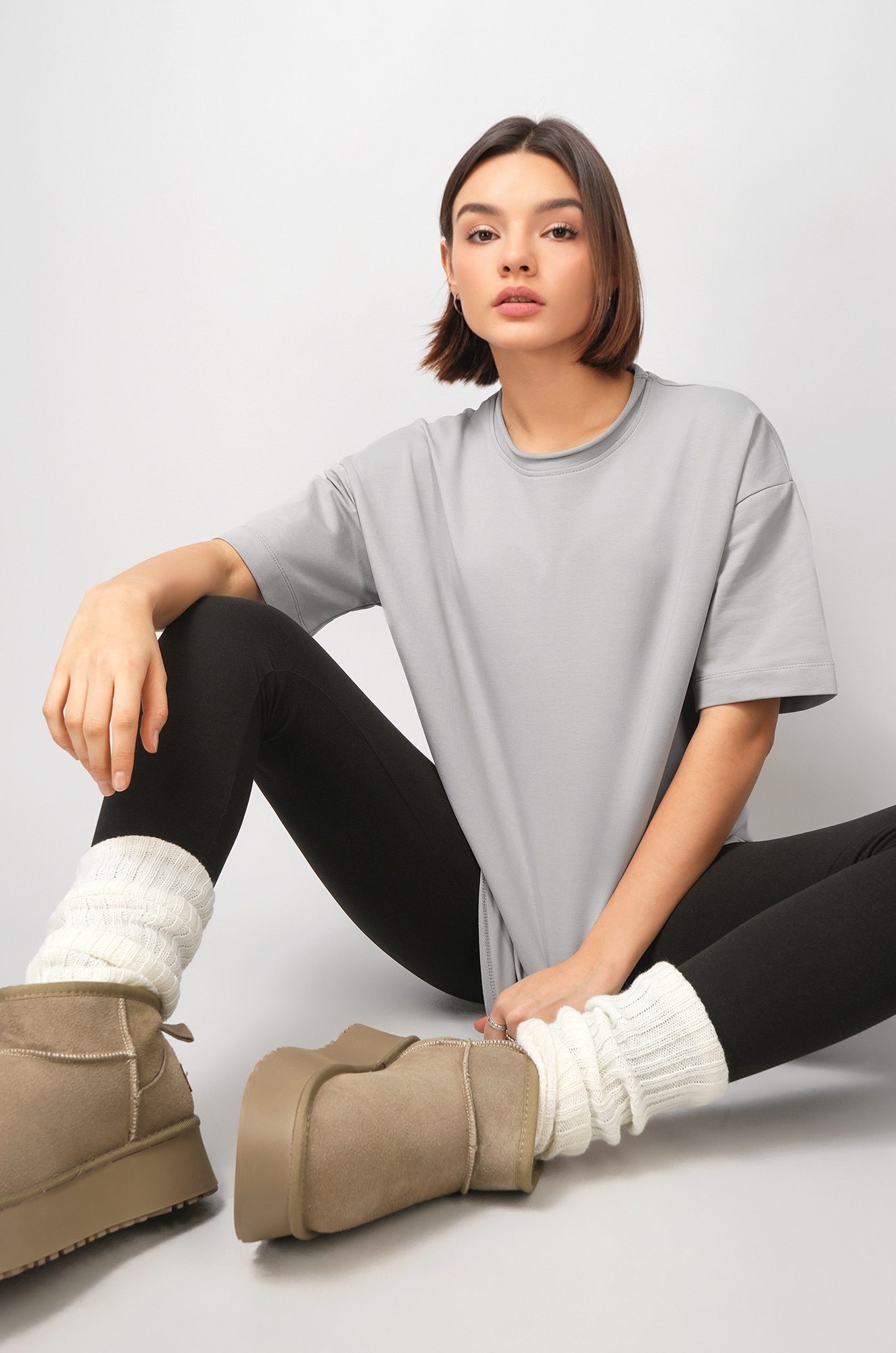 Универсальная серая футболка для женщин станет идеальным вариантом для дома, прогулок и для спорта.