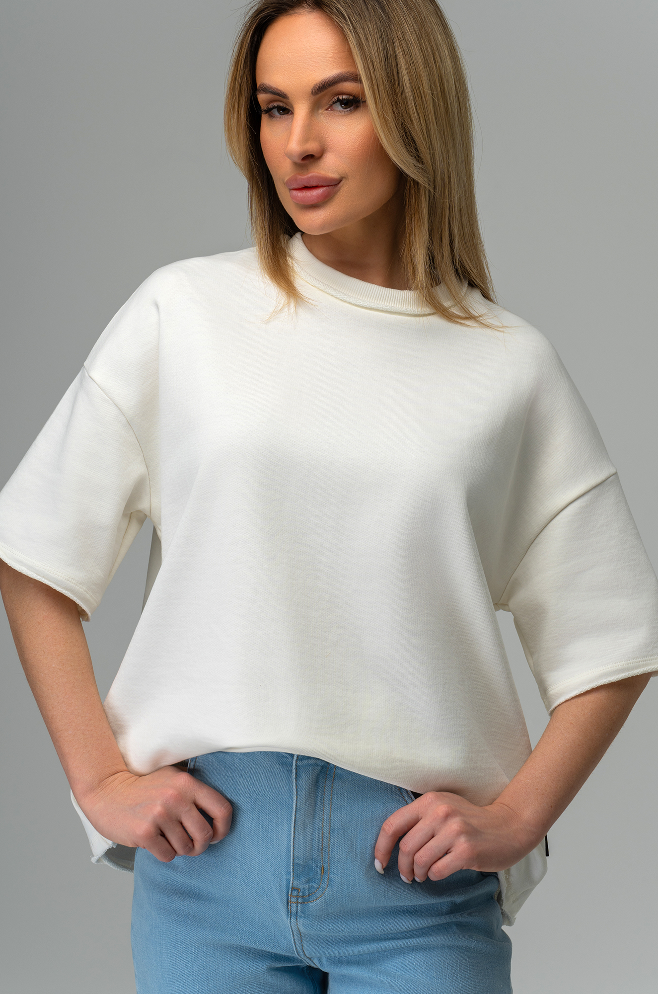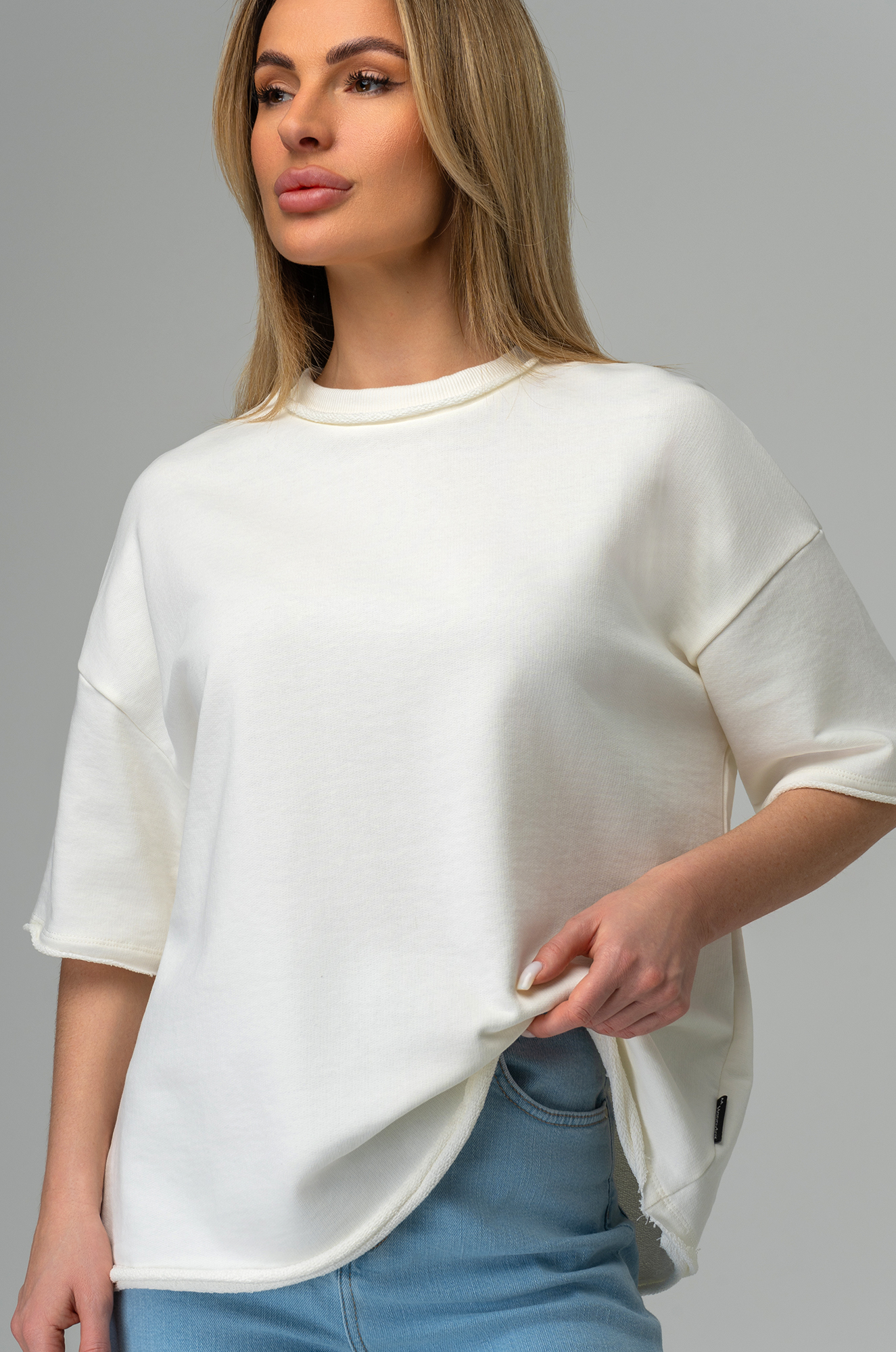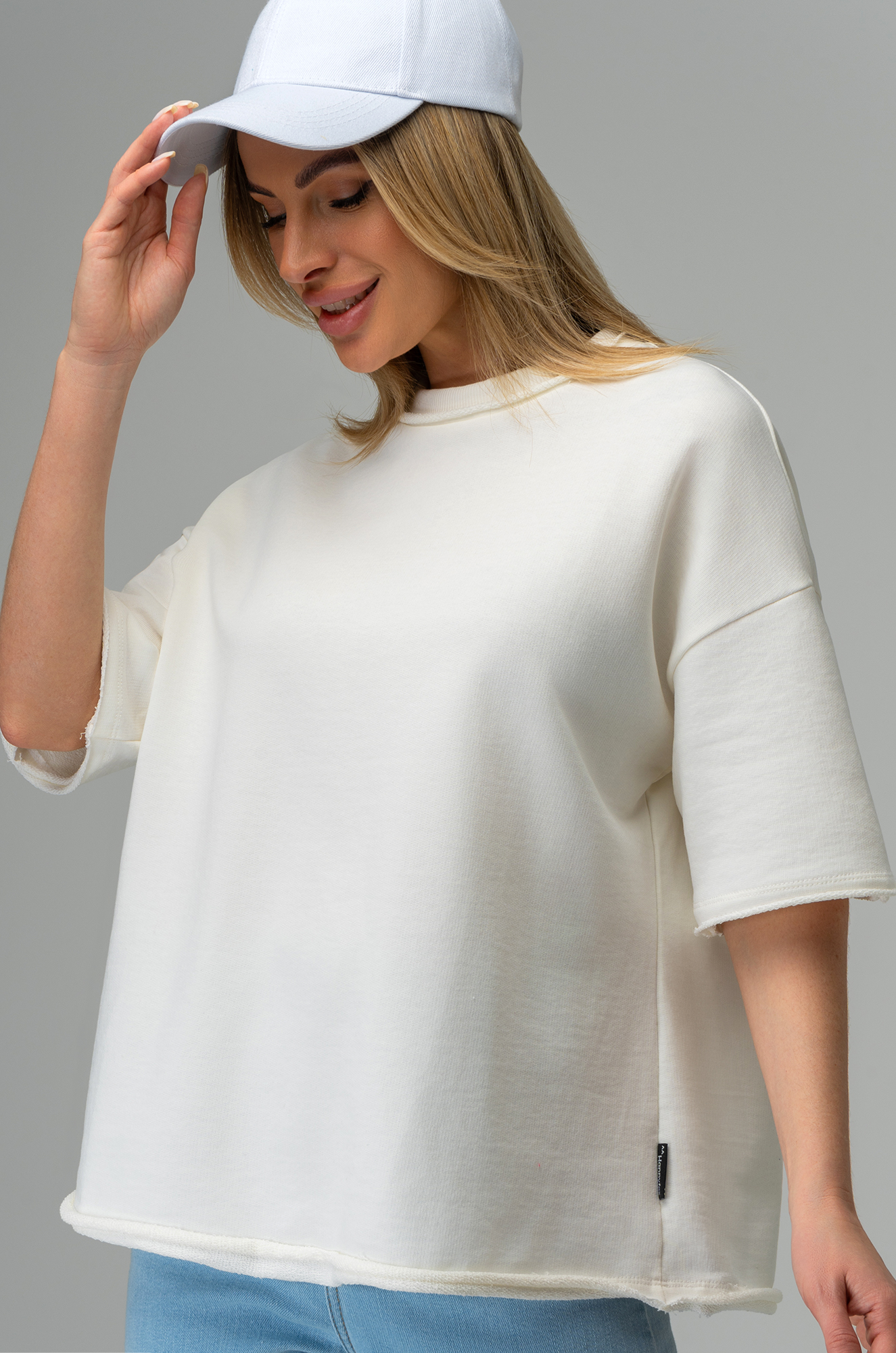 Женская футболка оверсайз легко впишется в любой повседневный образ. Базовая футболка молочного оттенка создана для тех, кто ценит простоту и утончённую элегантность.