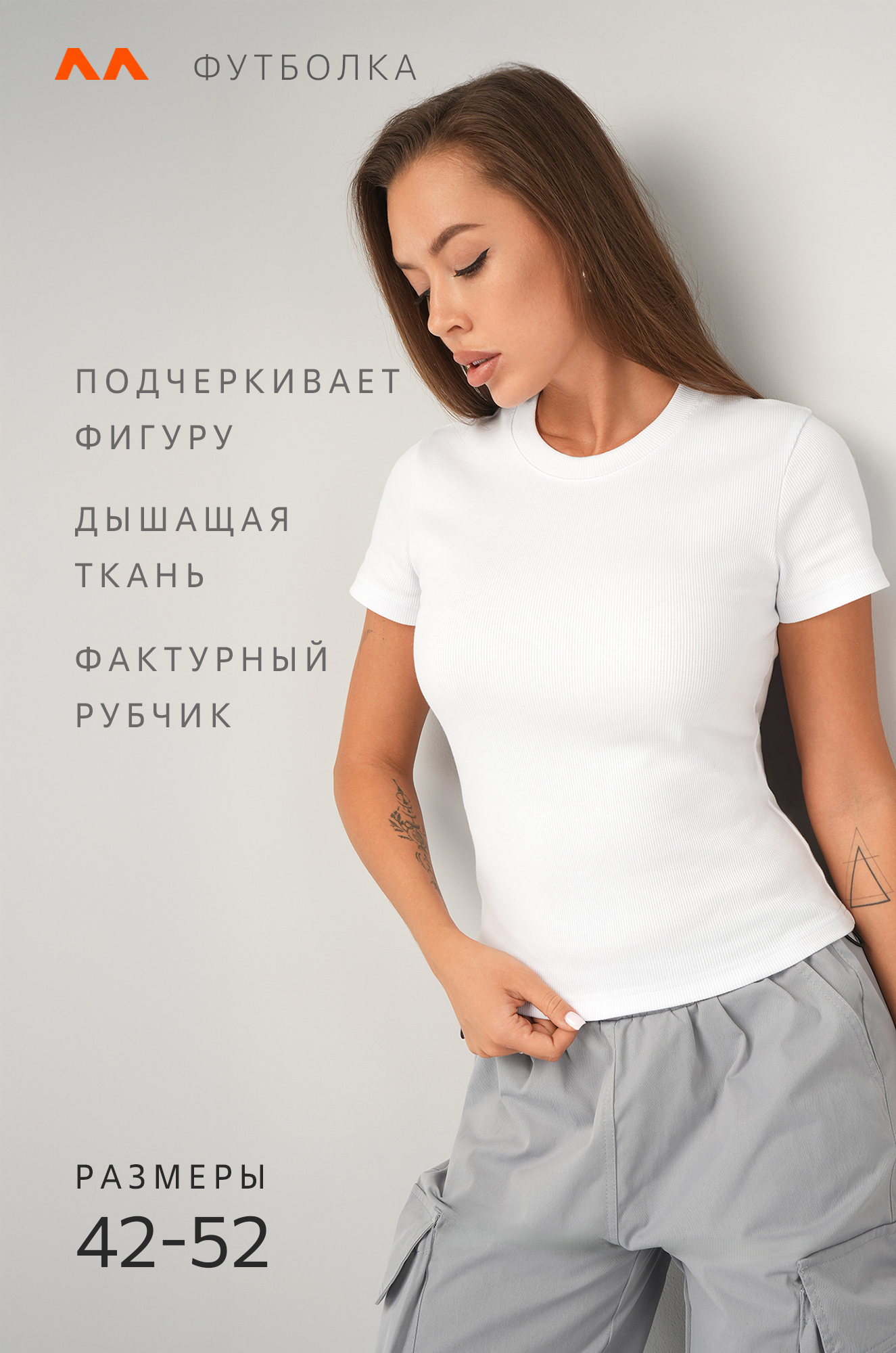 Футболка из трикотажа идеальна для прогулок и активного отдыха летом. Хлопковая футболка с коротким рукавом идеально впишется в образ в уличном и смарт кэжуал (smart casual) стилях. Базовую футболку для женщин можно носить самостоятельно или в качестве основы многослойного образа осенью и весной – выбор только за вами!