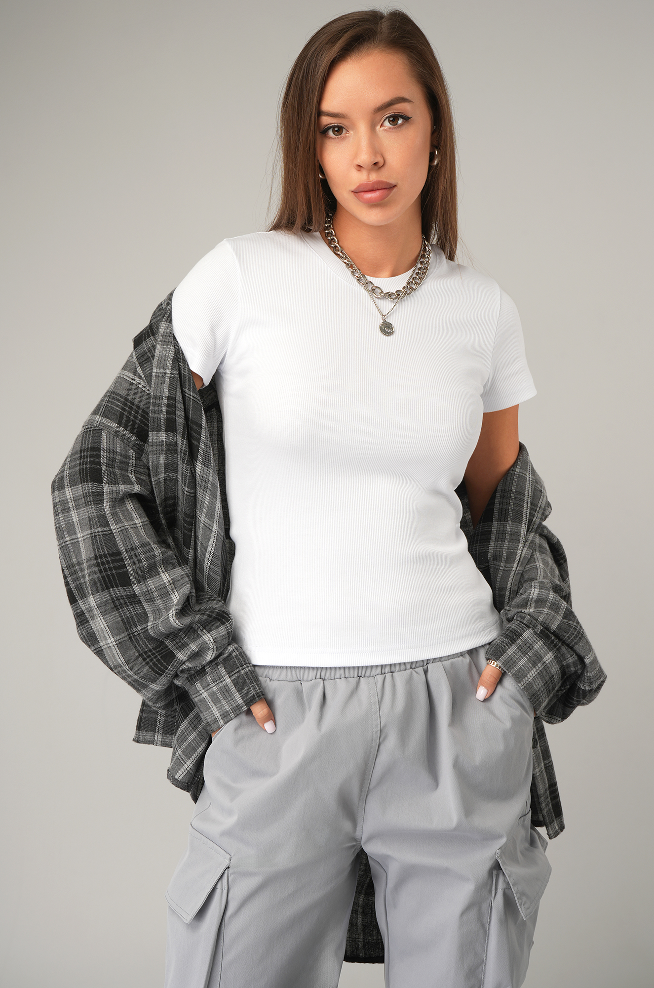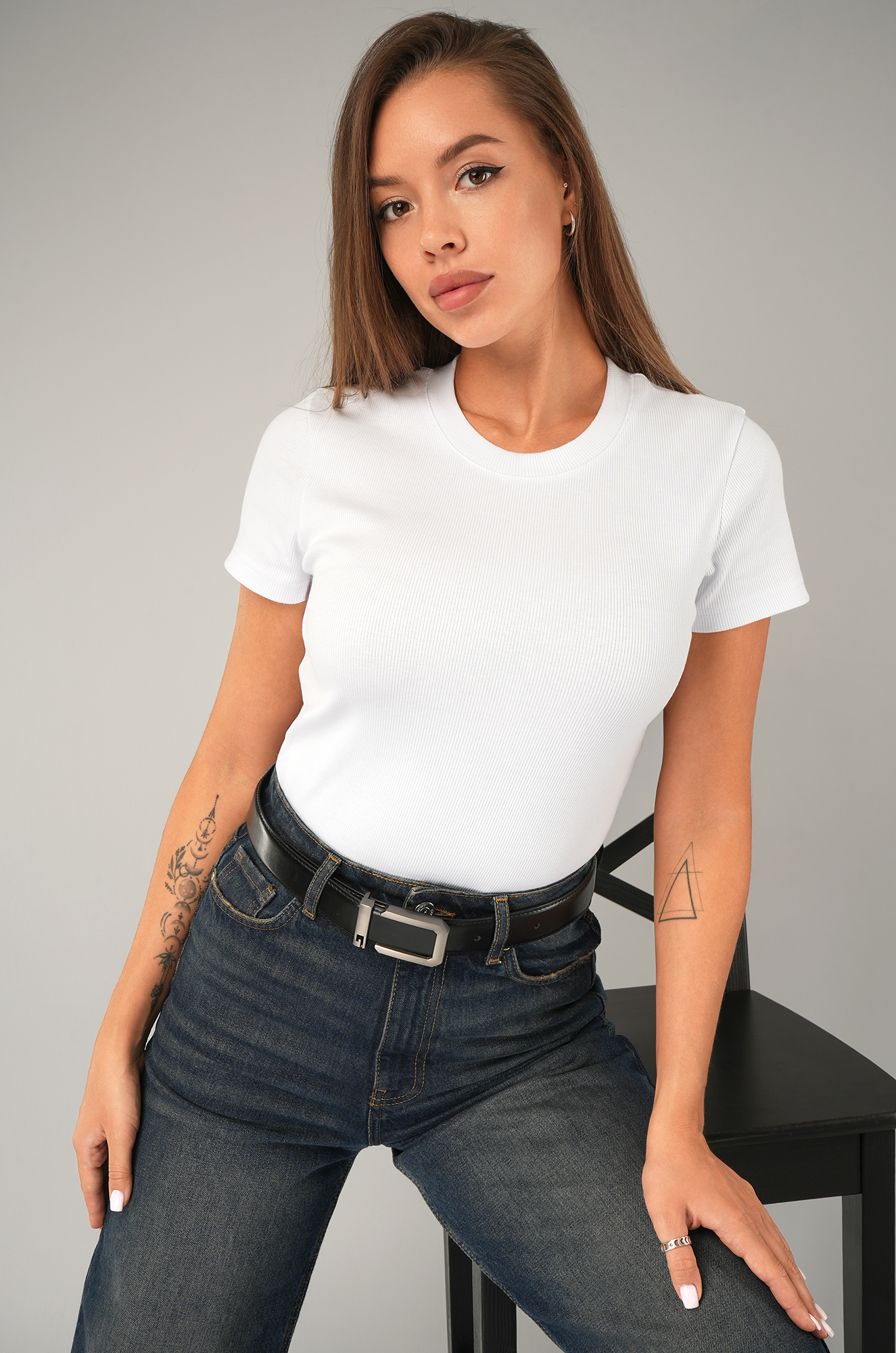 Женская футболка в рубчик выполнена из невероятно мягкого хлопка. Облегающий крой подчёркивает изгибы твоей фигуры, вырисовывая соблазнительные линии.