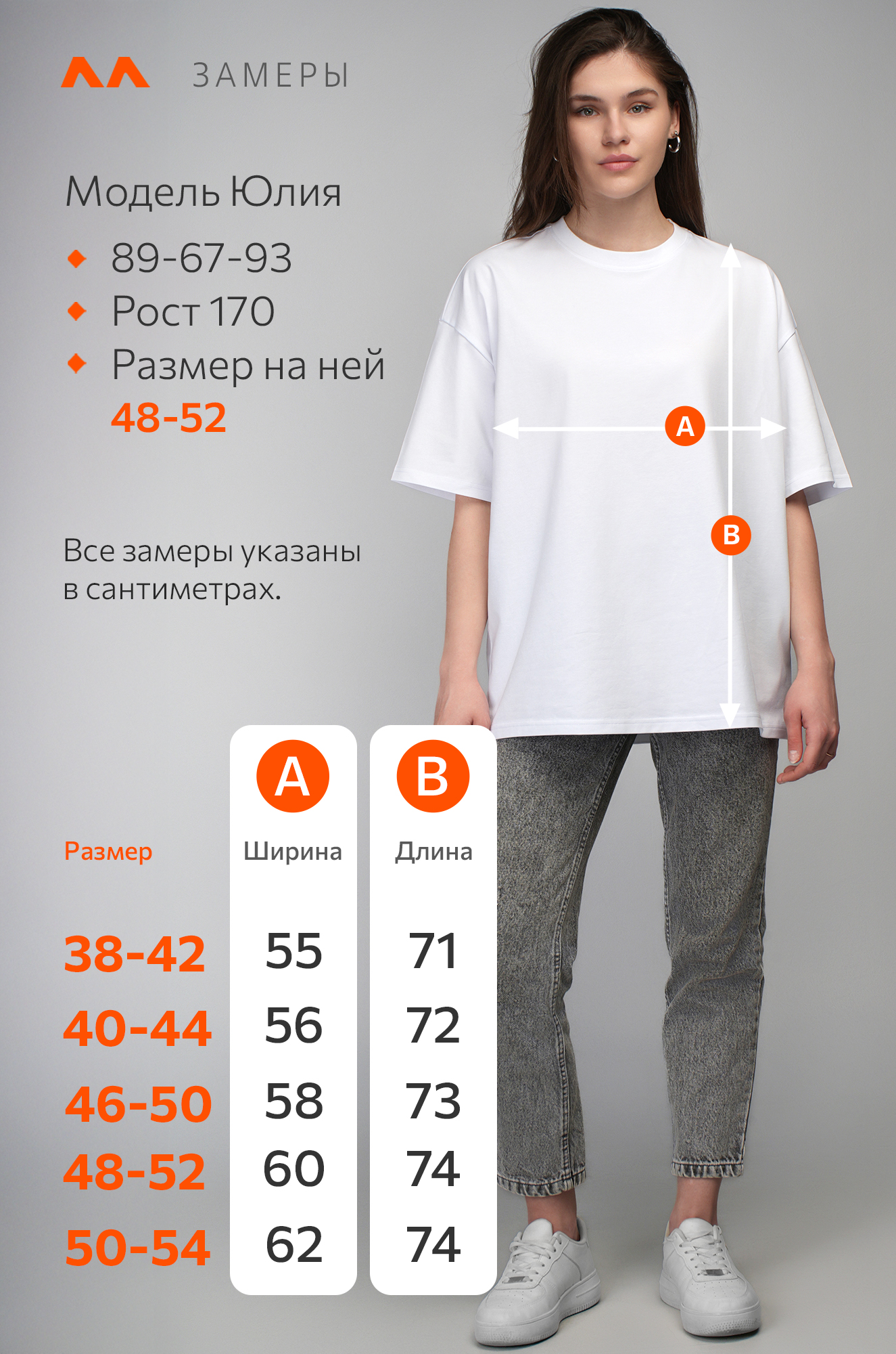 Рост модели 171 см, параметры: 84-60-92 см. На ней размер 42.