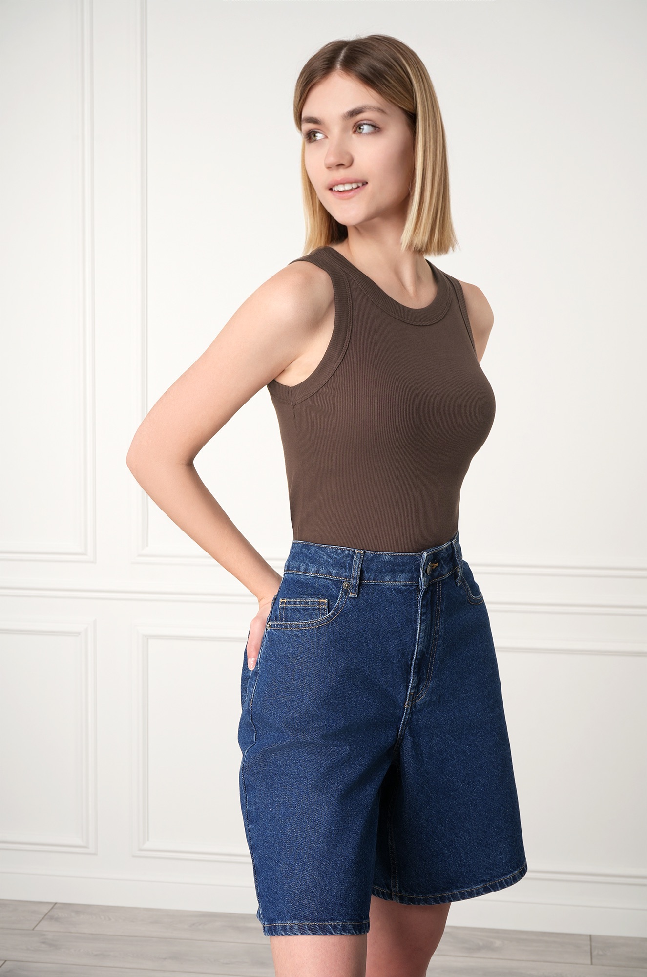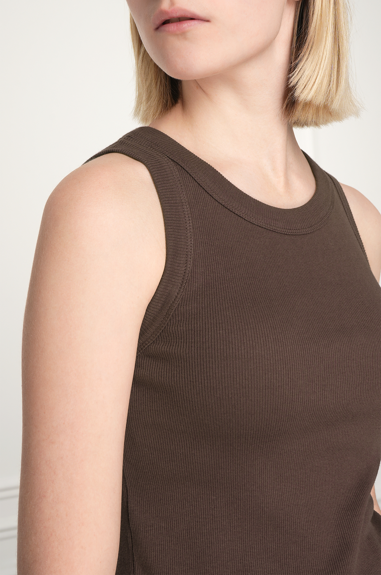 Женская майка в рубчик — универсальная базовая модель для повседневных образов. Майка шоколадного цвета для женщин выполнена из мягкого и легкого трикотажа кашкорсе, который приятен к телу.