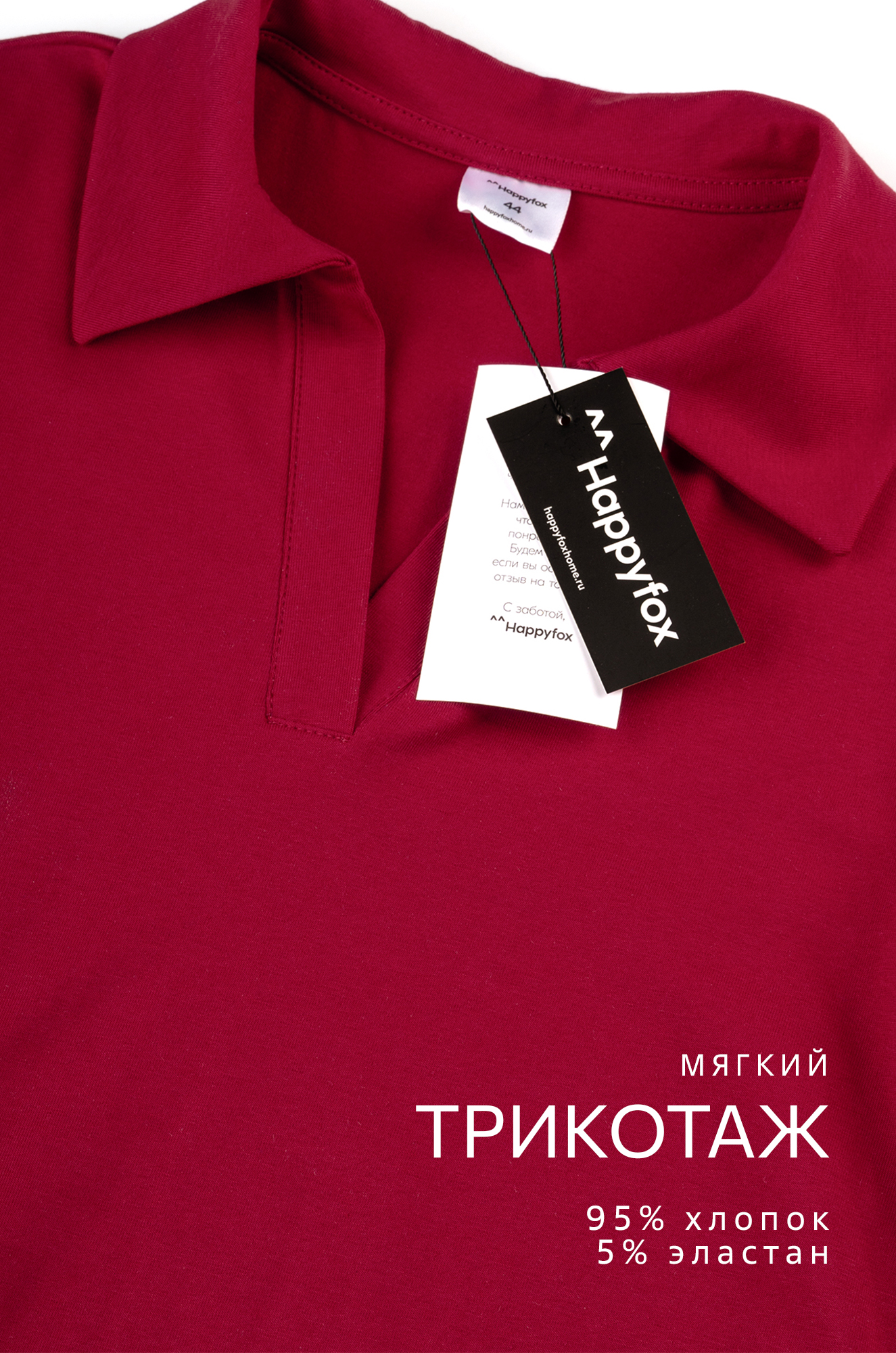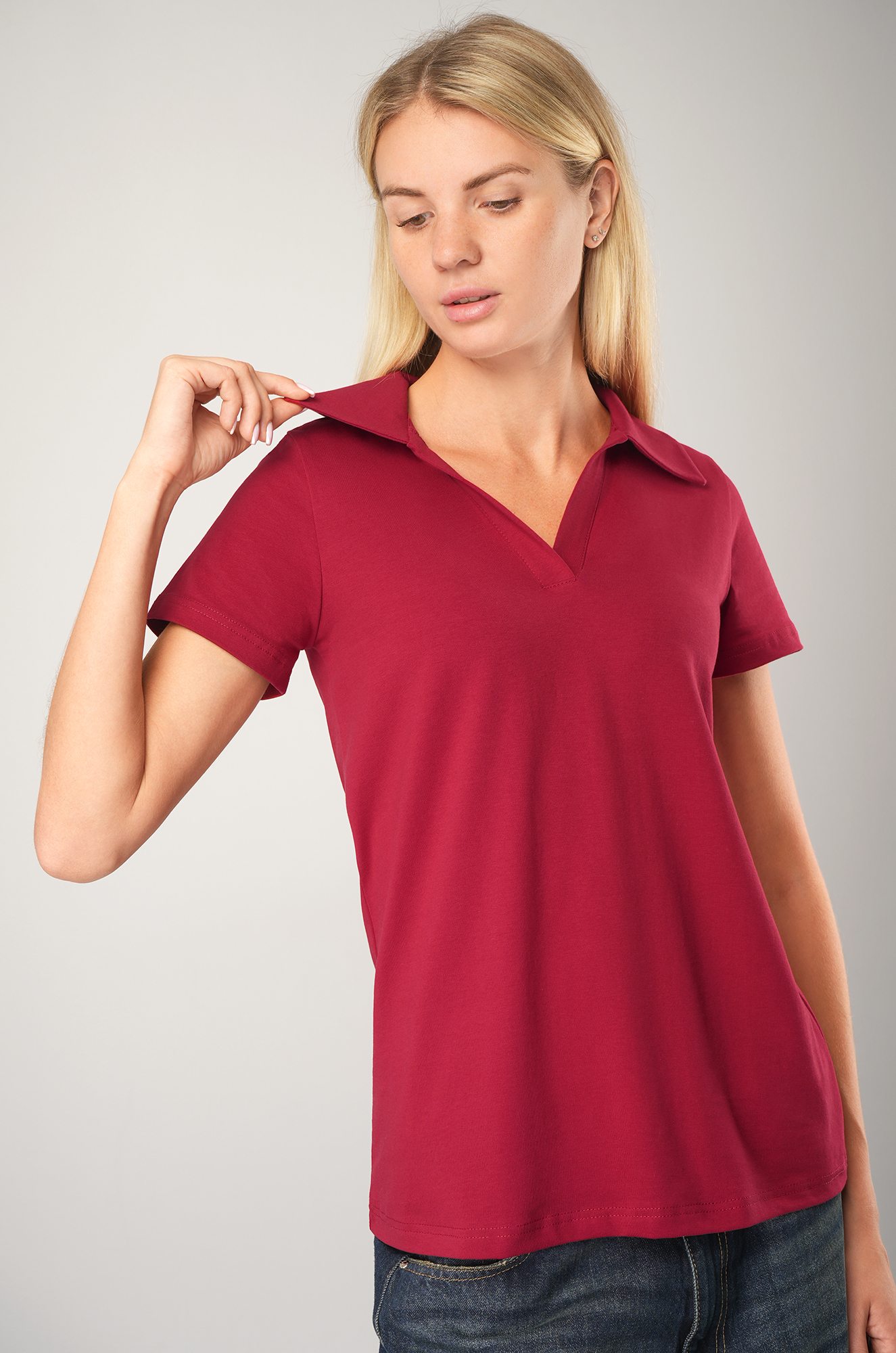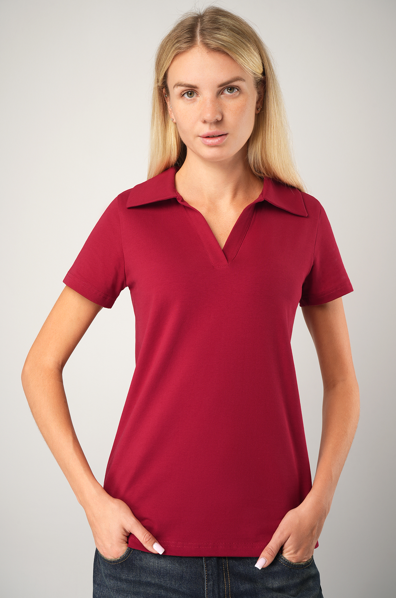 Бордовая футболка поло из трикотажа кулирная гладь выполнена в лаконичном дизайне: прямой крой, отложной воротник и V-вырез добавляют изящности. Хлопковое поло подойдет для похода в офис, на прогулку и для дома.