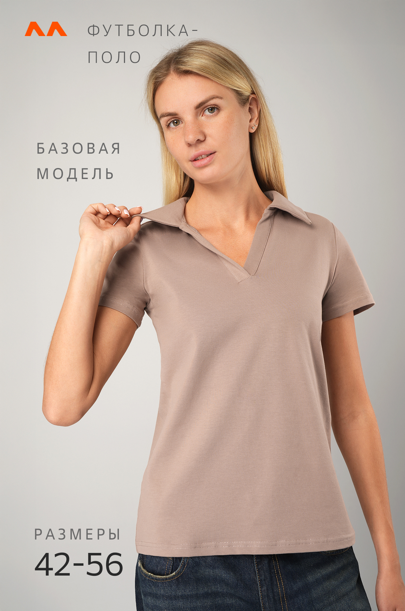 Бежевая футболка поло из трикотажа кулирная гладь выполнена в лаконичном дизайне: прямой крой, отложной воротник и V-вырез добавляют изящности. Хлопковое поло подойдет для похода в офис, на прогулку и для дома.