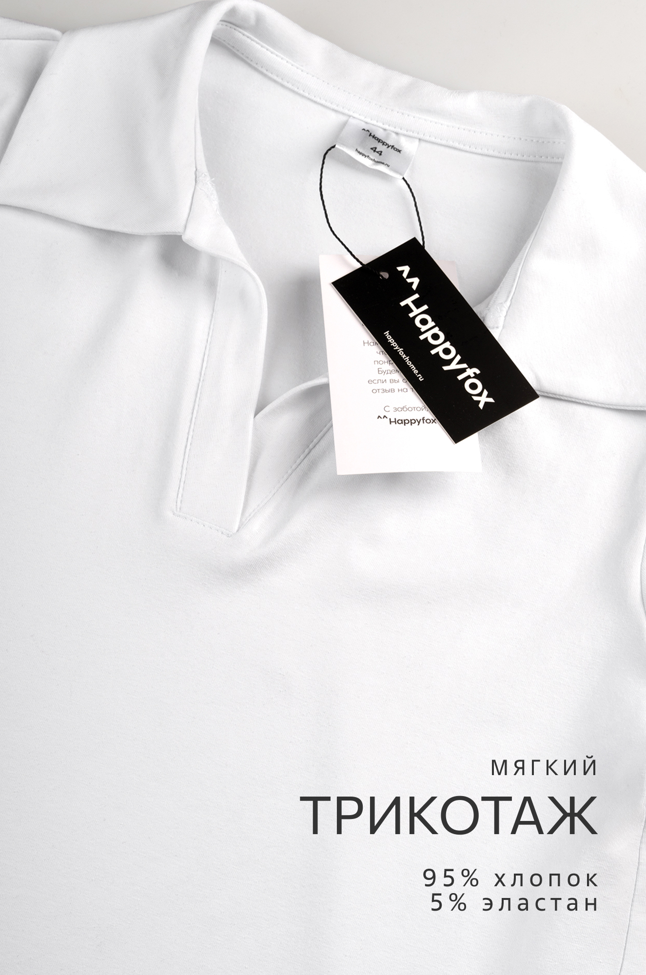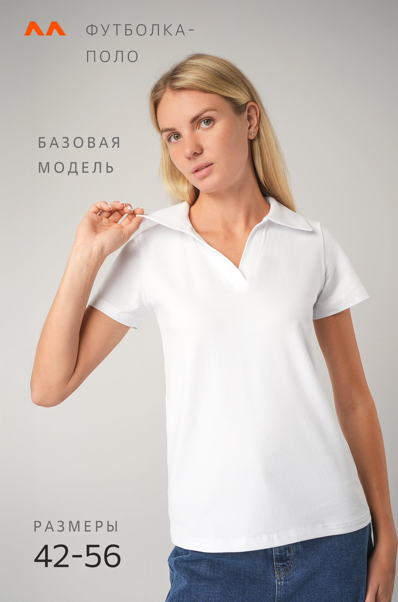 Белая футболка поло из трикотажа кулирная гладь выполнена в лаконичном дизайне: прямой крой, отложной воротник и V-вырез добавляют изящности. Хлопковое поло подойдет для похода в офис, на прогулку и для дома.