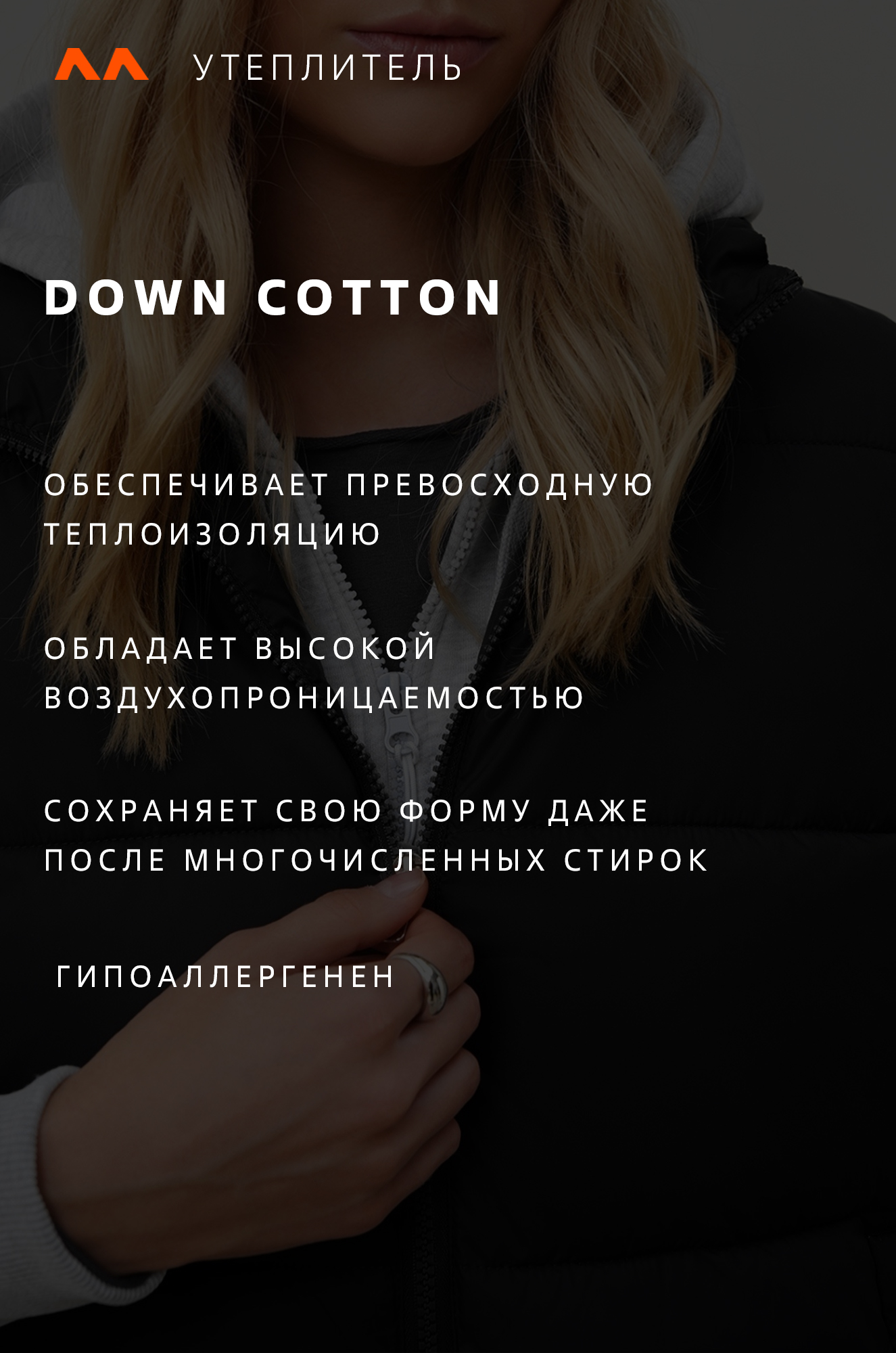— утеплитель Down cotton (синтепон) с оптимальной плотностью 200 г/м²;